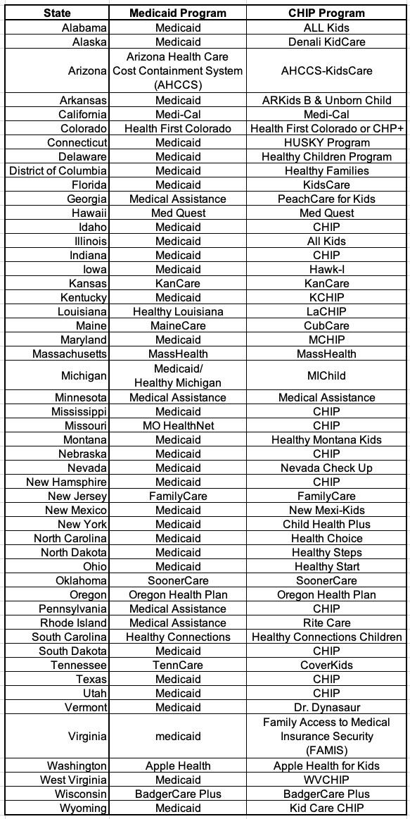 Medicaid & CHIP program names vary: