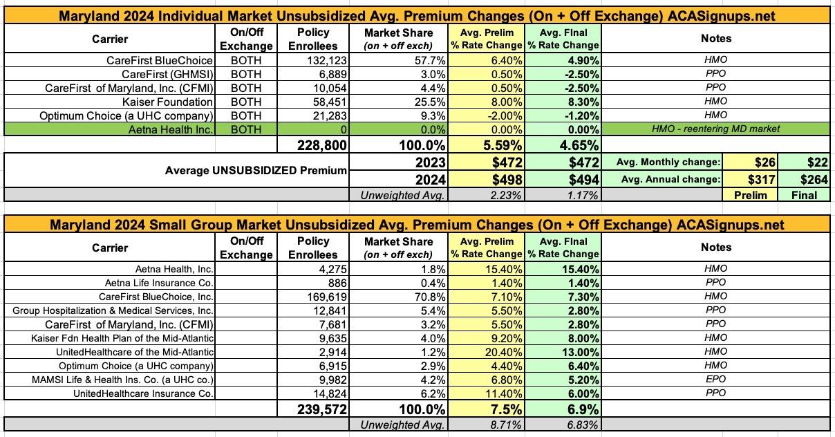 Maryland: *Final* avg. 2024 #ACA rate changes: +4.7%
