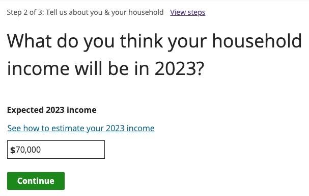 At $70,000/year, this family is earning 233% of the Federal Poverty Level, and is eligible for $1,336/month in federal tax credits to reduce their monthly premiums.