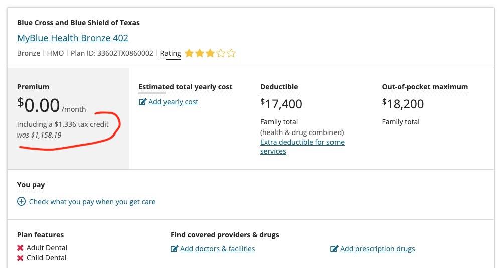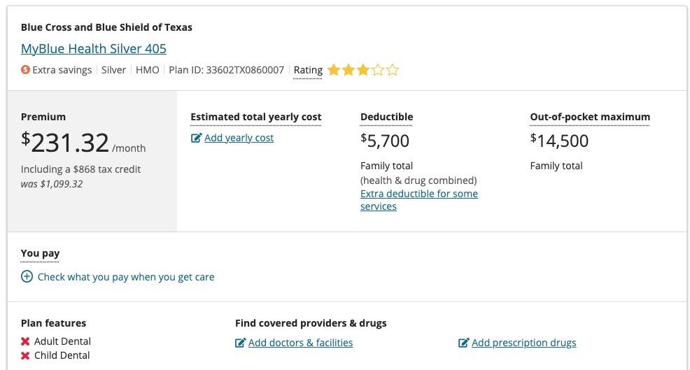 The thing is, this Bronze plan would be a terrible choice for them anyway. They'd be much better off choosing the Gold BCBSTX plan: