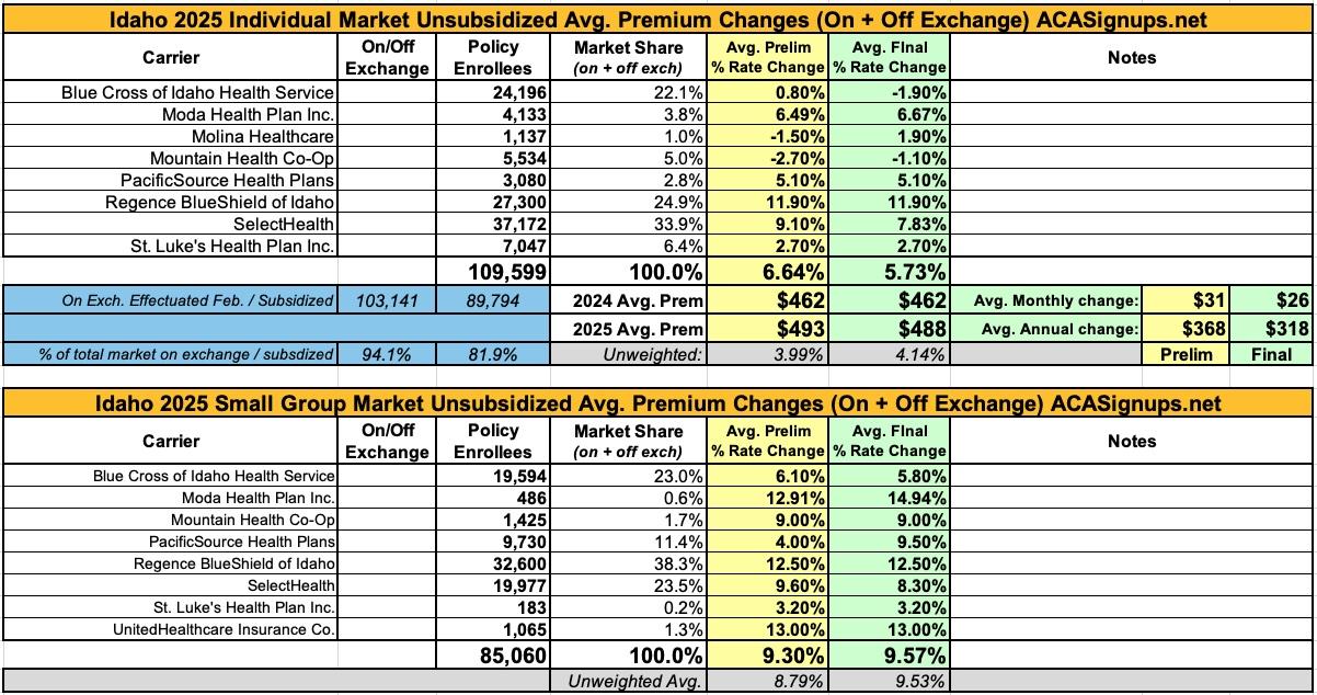 Idaho: *Final* avg. unsubsidized 2025 #ACA rate changes: +5.7%
