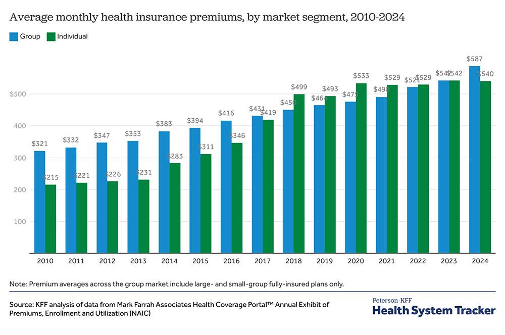 Well, as best as I can tell, it came from a bar graph in a KFF analysis from last month which compares ACA individual market premiums to Employer-Sponsored Insurance (ESI) premiums over time: