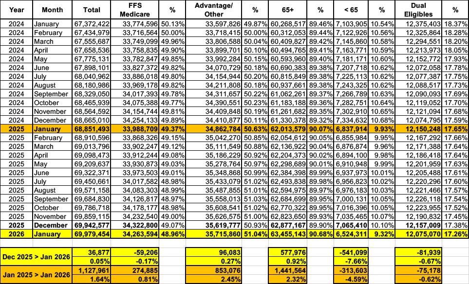 CMS posts January 2026 Medicare data; nearing 70M, Advantage enrollment starts increasing market share again