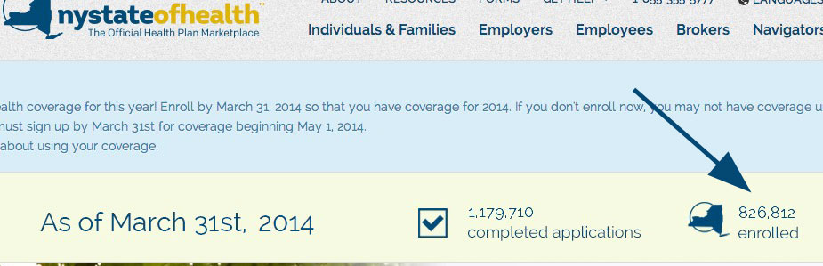 ...as of 9 a.m. today, 1,162,795 New Yorkers have completed their applications and 812,033 have enrolled for coverage since the launch of the Marketplace on October 1, 2013.