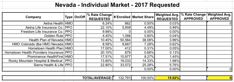 Unlike the standard SERFF database, which is comprehensive but also can be confusing as hell, Nevada's system is simple, clean, easy to navigate and, most of all, every single carrier filing listed displays the number of current enrollees clearly.This is a huge pet peeve of mine, which is understandable given what I'm trying to do here!