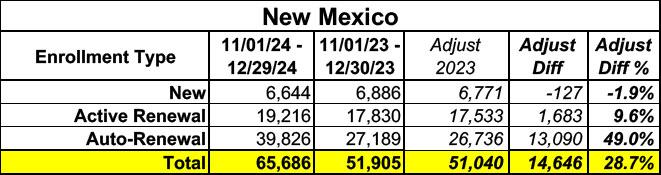 Not only is New Mexico's exchange enrollment up a whopping 29% vs. the same point last year, it's actually already 15% higher than the 2024 OEP's final total of 56,472!