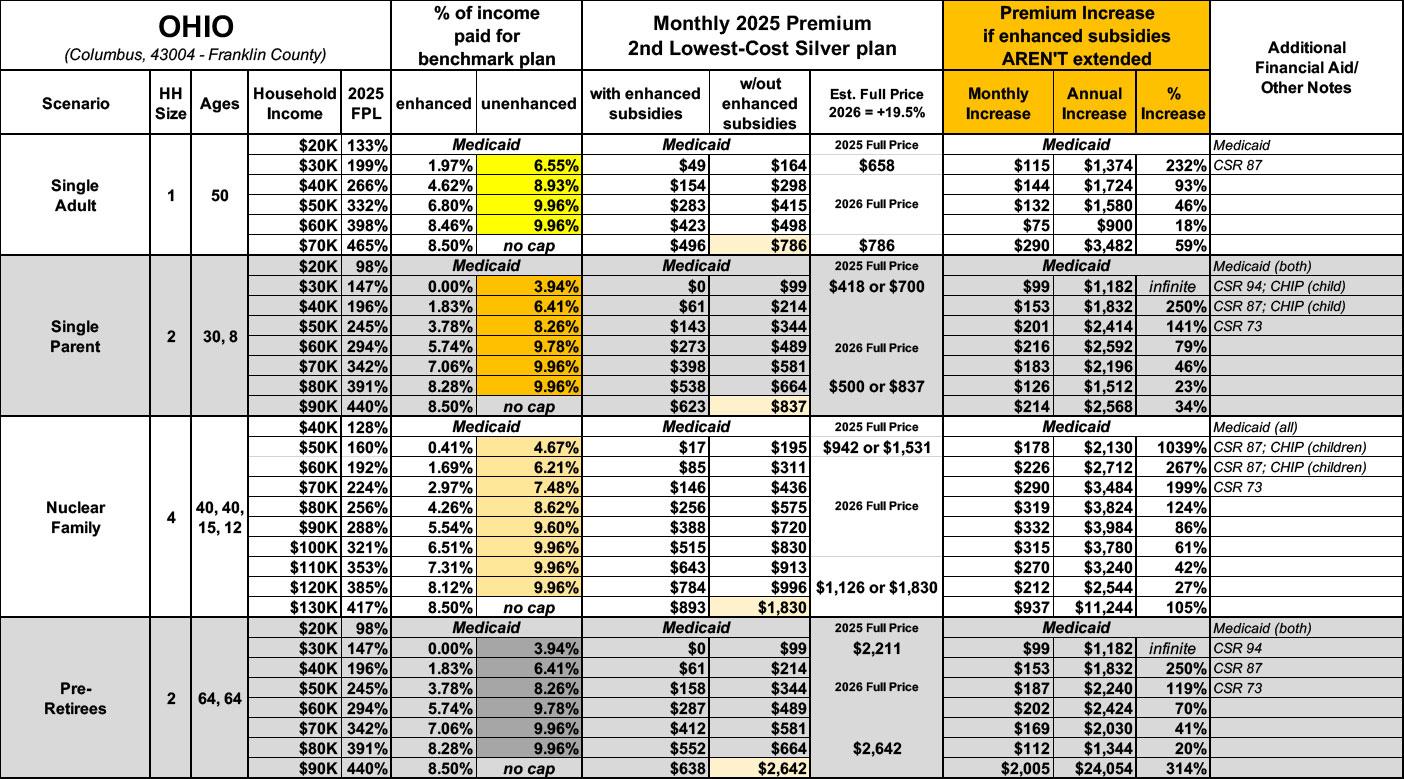I decided to run the numbers myself to get an idea of just how much the combination of expiring IRA subsidies and the CMS "Affordability/Integrity Rule" will cause net premiums to increase starting in January 2026.
