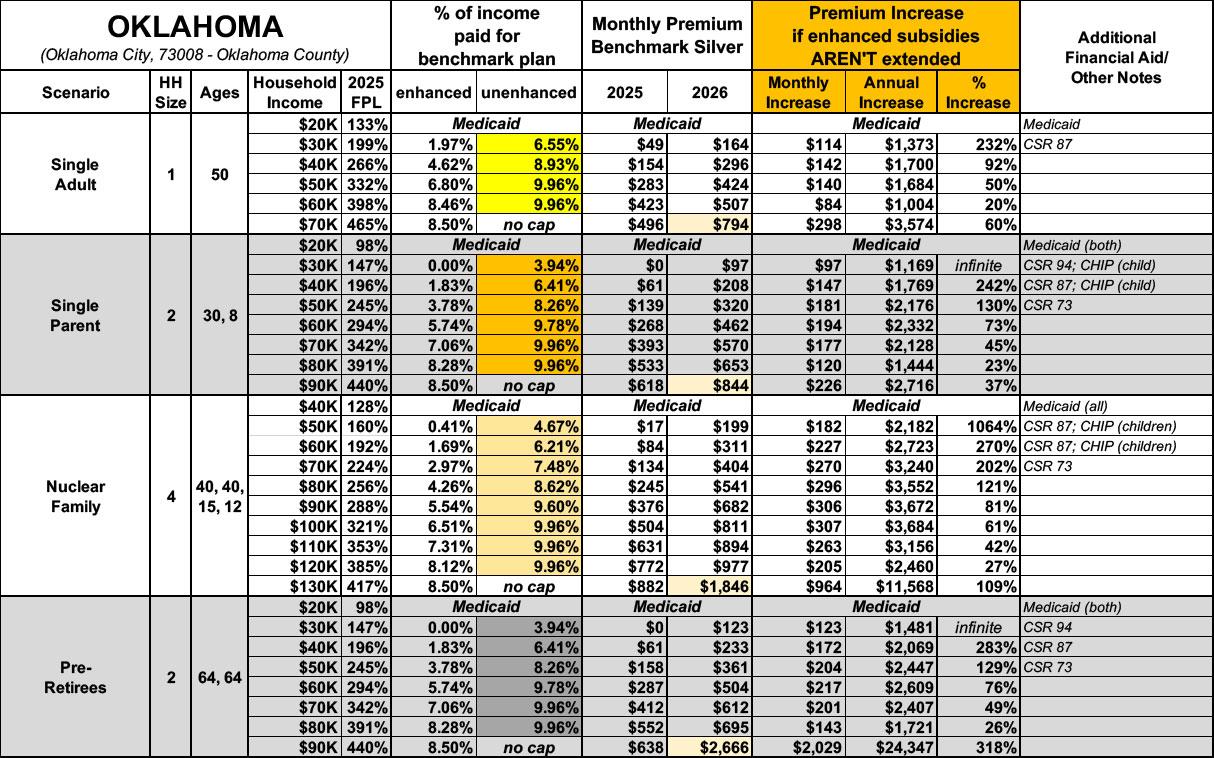 How much more will ~300,000 OKLAHOMA residents pay if the improved #ACA subsidies expire? (updated)