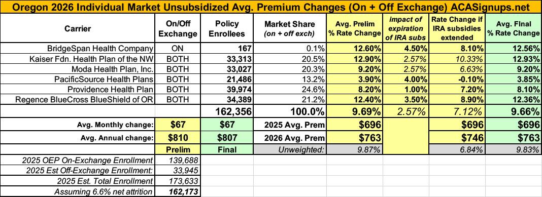 In Oregon specifically, all of this will result in average gross premiums hikes of (a relatively mild) 9.7%.