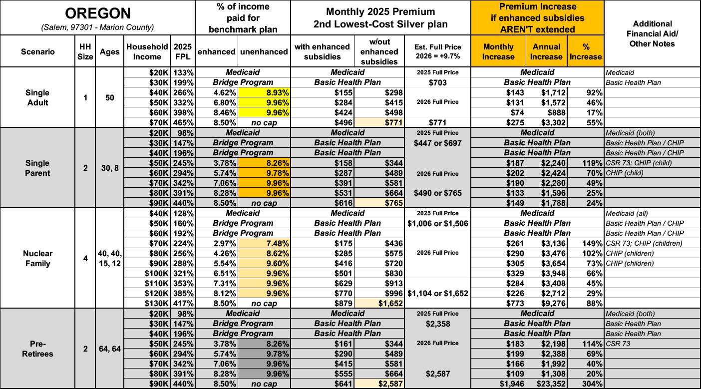 NOTE: Oregon also has around ~32,000 residents enrolled in their Basic Health Plan (BHP) Program, the "Bridge Program." I'm uncertain as to how they'll be impacted by all of this.