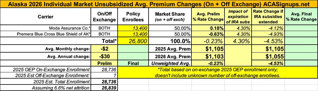 So, the good news for Alaska ACA enrollees is that their gross premiums are remaining pretty much identical in 2026 at the same time that every other state is raising rates by over 20% on average. The bad news, however, is that...